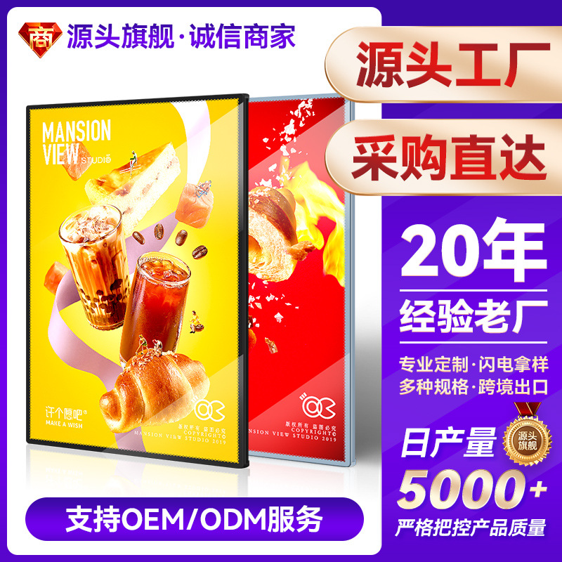 Gambar kotak lampu papan reklame dinding kaca dalam ruangan LED poster pemancar cahaya poster menu ilustrasi pabrik penjualan langsung