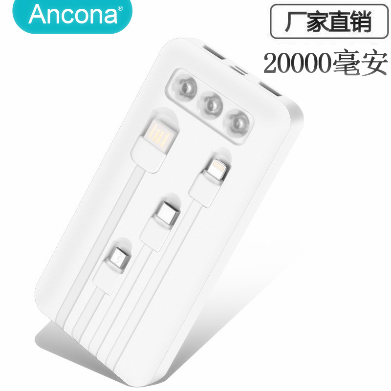 Treasure Charger Kabel Sel-Belt Model Baru Empat Dalam Satu 20000 mAh Pencetakan LOGO Sumber Daya Ponsel Kapasitas Besar