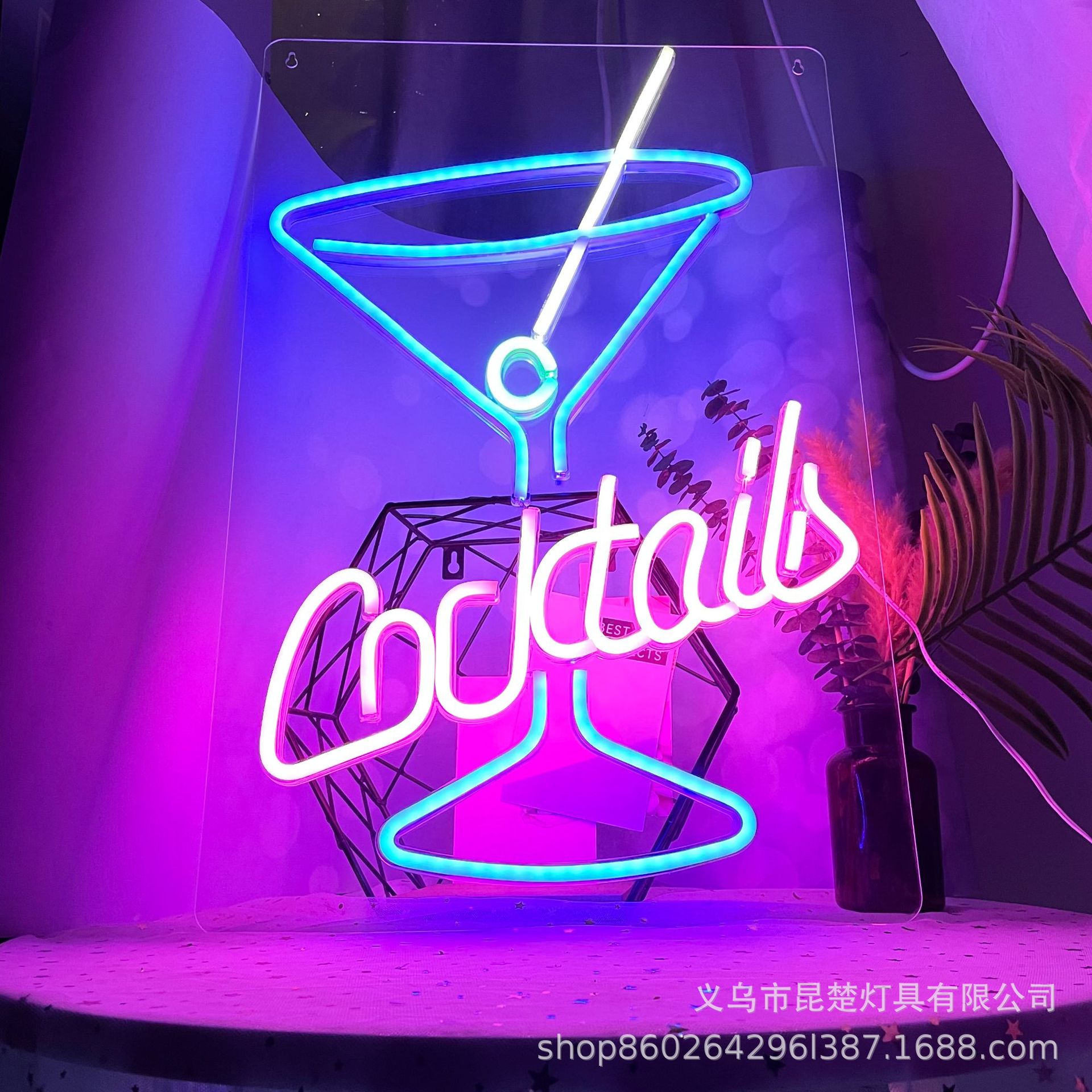 Cross-border lampu hias LED akrilik neon papan latar cangkir koktail lampu bar suasana papan nama iklan
