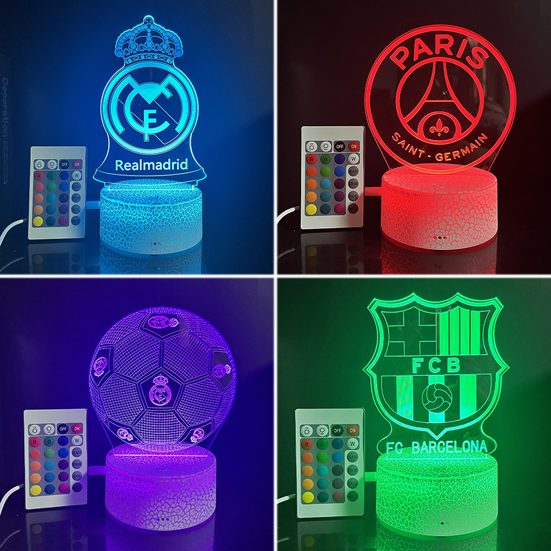 Lampu led visual meja hadiah lampu malam 3d kreatif pengatur waktu logo klub sepak bola lintas batas