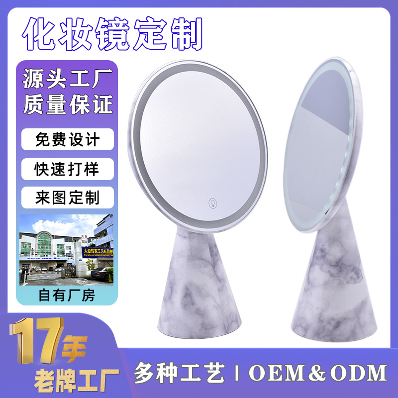 Kacamata Rias Marmer Gaya Eropa Oval dengan Lampu LED Meja Rias Rumah Kaca Gaya Instagram Logo Dapat Disesuaikan