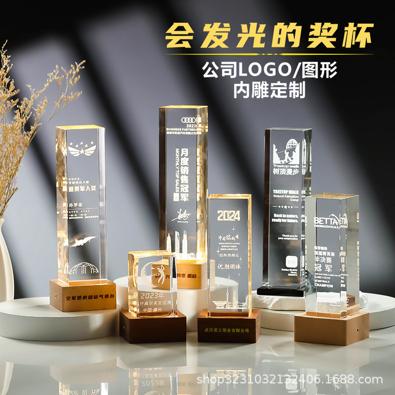 Hiasan ukiran interior lampu malam led sesuai pesanan suvenir ulang tahun logo perusahaan bercahaya kreatif Piala Kristal