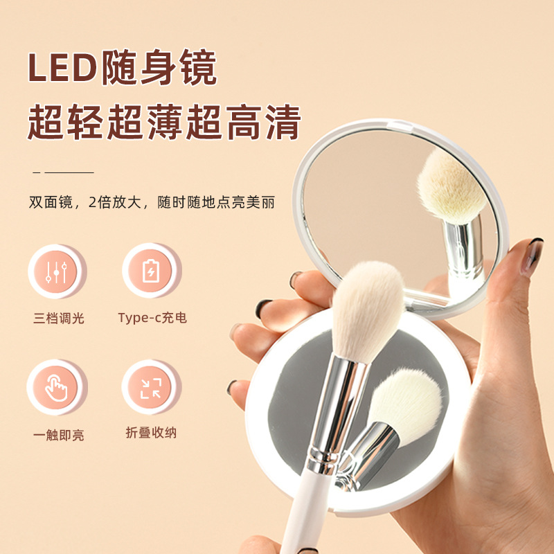 Cermin Rias LED Portabel Lintas Batas Dengan Lampu Lipat Hadiah Bentuk Bulat Lipat Cermin Kecantikan Praktis Dapat Dicetak LOGO Sumber