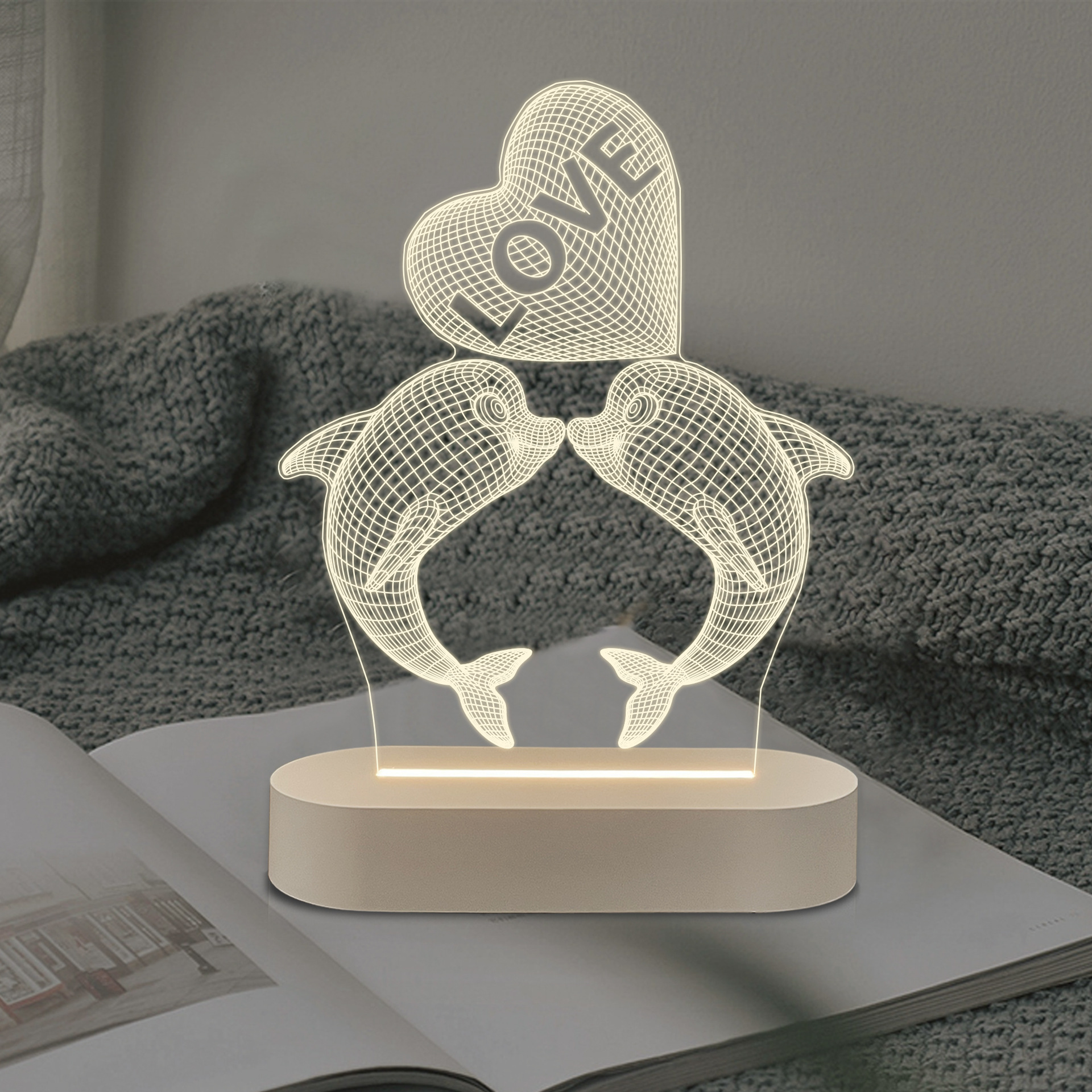 Lampu meja samping tempat tidur akrilik logo lampu malam 3D lumba-lumba cinta dasar oval putih kreatif lintas batas