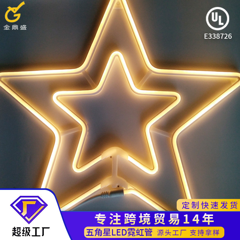 Penjualan langsung pabrik sertifikasi UL CE lampu Natal lampu iklan luar ruangan lampu pemodelan tabung neon LED bintang lima-sudut