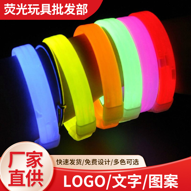 Gelang neon stik tiga gelang bercahaya malam berjalan disko bercahaya tali pergelangan tangan stik flash logo dicetak