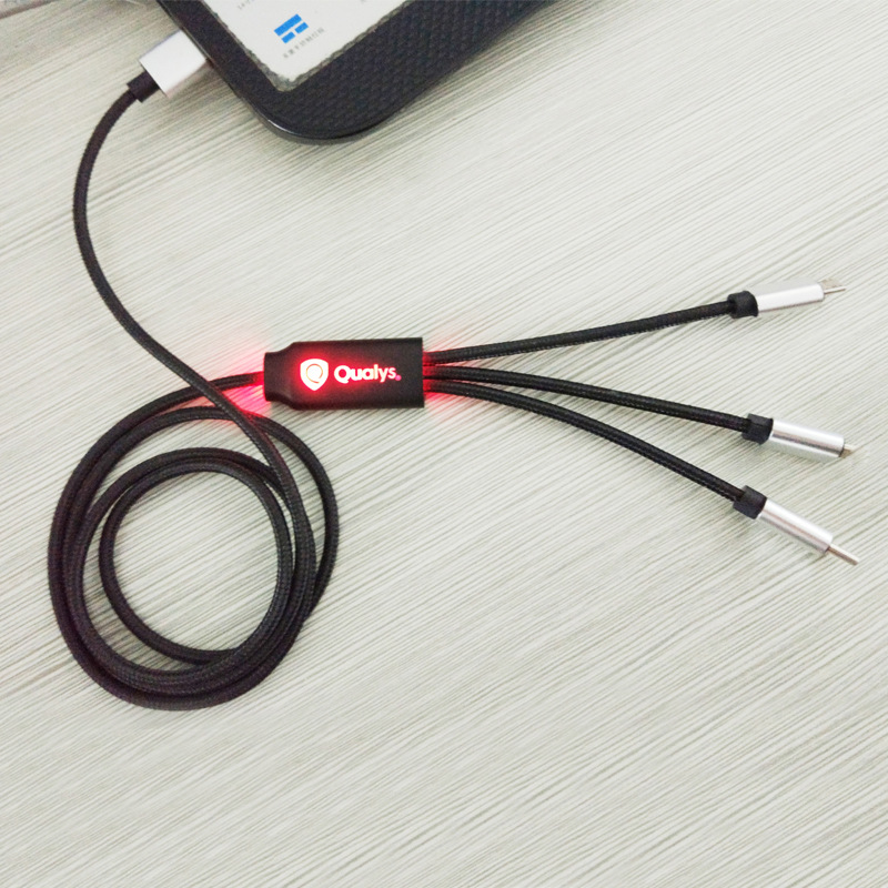 Kabel pengisi daya ponsel, logo kreatif bercahaya logo universal satu hingga tiga kabel data tiga dalam satu multifungsi dapat disesuaikan