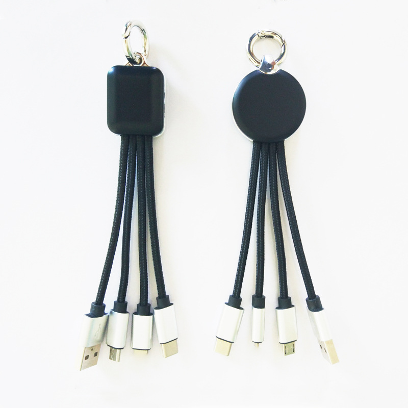 Gantungan kunci logo bercahaya kreatif, gantungan kunci satu per tiga kabel data multi-antarmuka tiga-dalam-satu anyaman bercahaya led