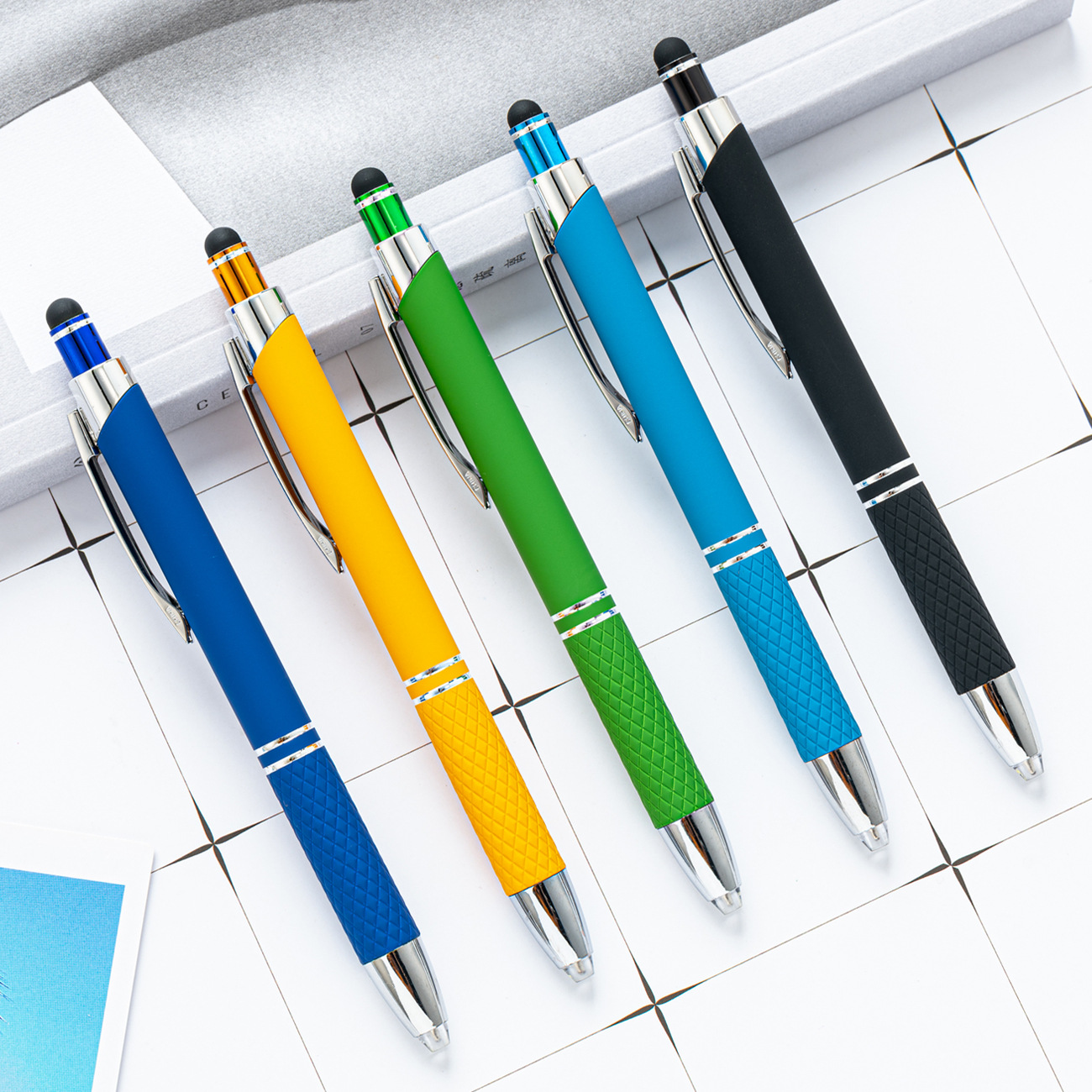 Pena kantor kapasitif layar sentuh empat dalam satu, pena pulpen logam cetak LOGO, pena lampu LED