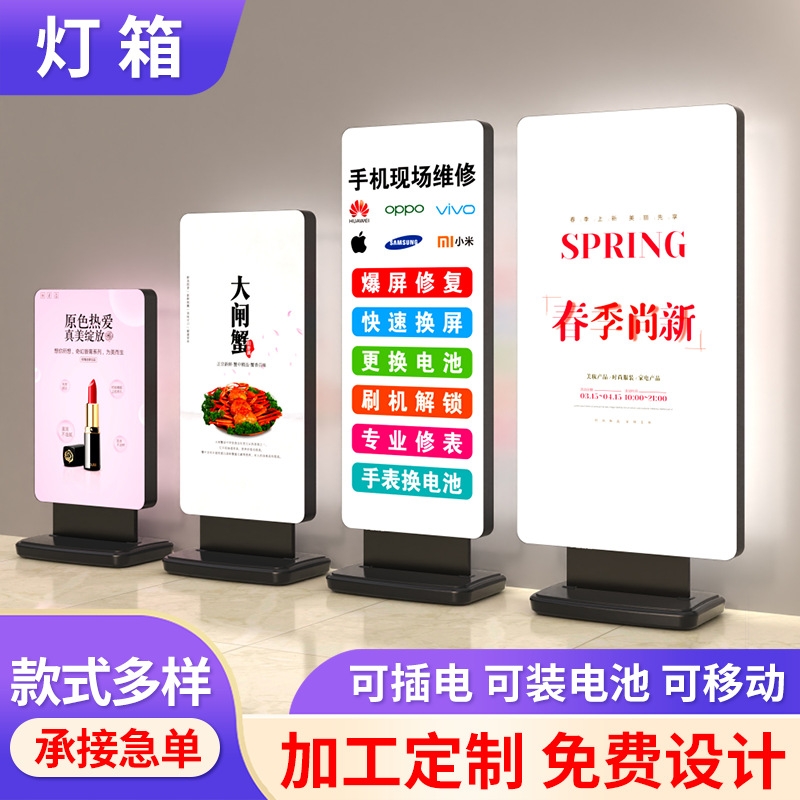 Kotak lampu LED, papan reklame lantai vertikal dua sisi luar ruangan bercahaya display kartu film lembut khaki toko ponsel kotak lampu