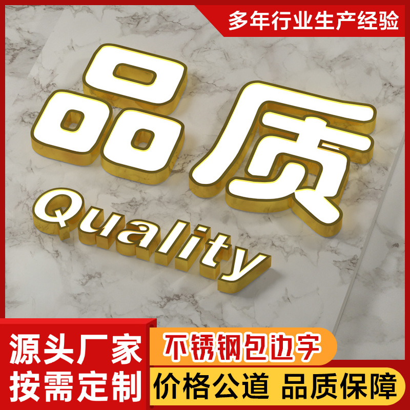 Stainless Steel Backlight Karakter Titanium Karakter Emas Backlight Karakter Tanpa Tepi Pintu Papan Nama Membuat Karakter Iklan LED Produsen