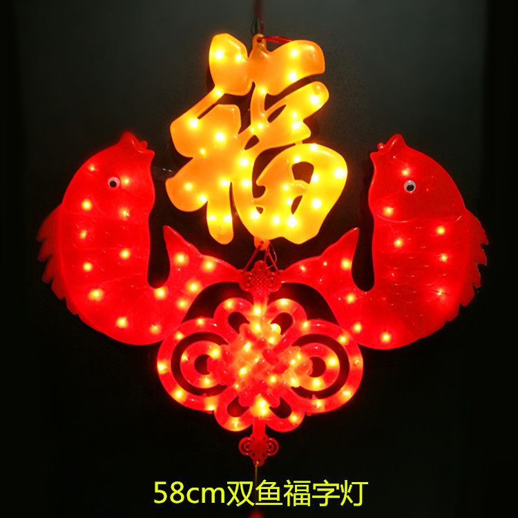 Lampu pendar dekorasi toko lanskap proyek pembukaan iklan simpul Cina simpul ganda ikan ganda LED warna-warni cahaya warna keberuntungan