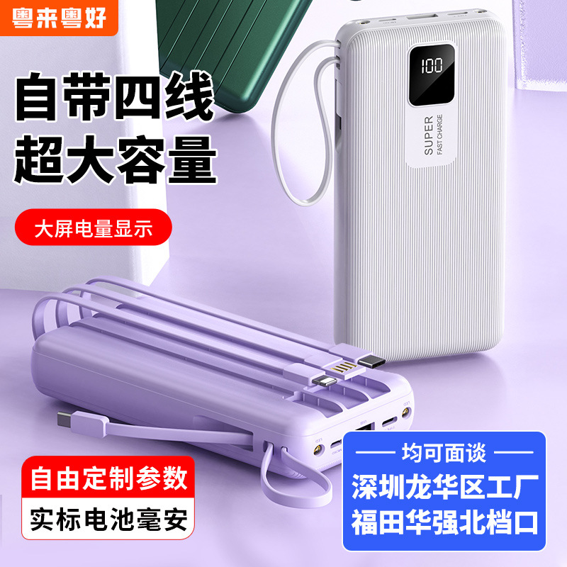 Power bank portabel berkabel ringan grosir, catu daya ponsel LOGO cetak hadiah kapasitas besar 20000 mA
