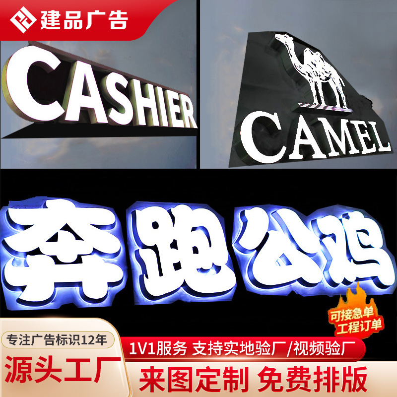 Akrilik krom kerajinan bercahaya kata pintu kepala iklan papan gambar dinding logo papan reklame lampu latar logam