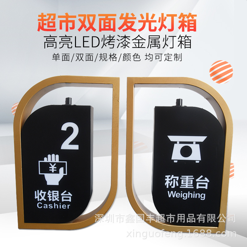 Shopping mall supermarket kotak lampu kasir gantungan dua sisi berbentuk daun mal belanja bercahaya kata tag bingkai tag cat tag