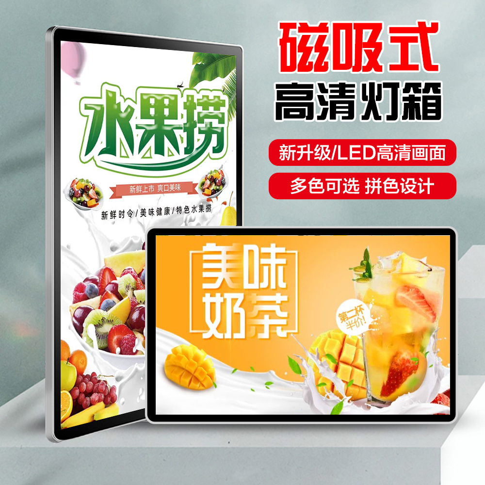 Kotak papan reklame LED bulat magnetis ultratipis layar terpasang di dinding papan reklame daftar harga menu toko teh susu gantung