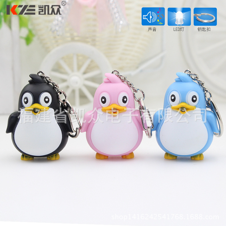 Pasokan pabrik gantungan kunci led suara bercahaya kartun hewan logo penguin gantungan kunci liontin grosir