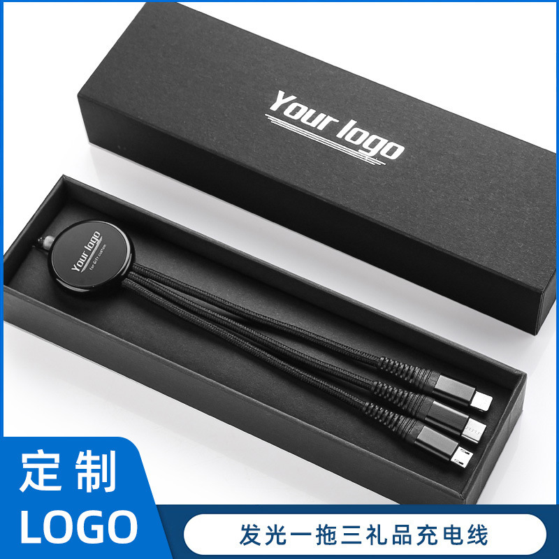 Kabel Data LOGO Bercahaya LED 3-in-1 Kabel Pengisi Listrik Satu-Tiga Android TYPE-Hadiah Bisnis