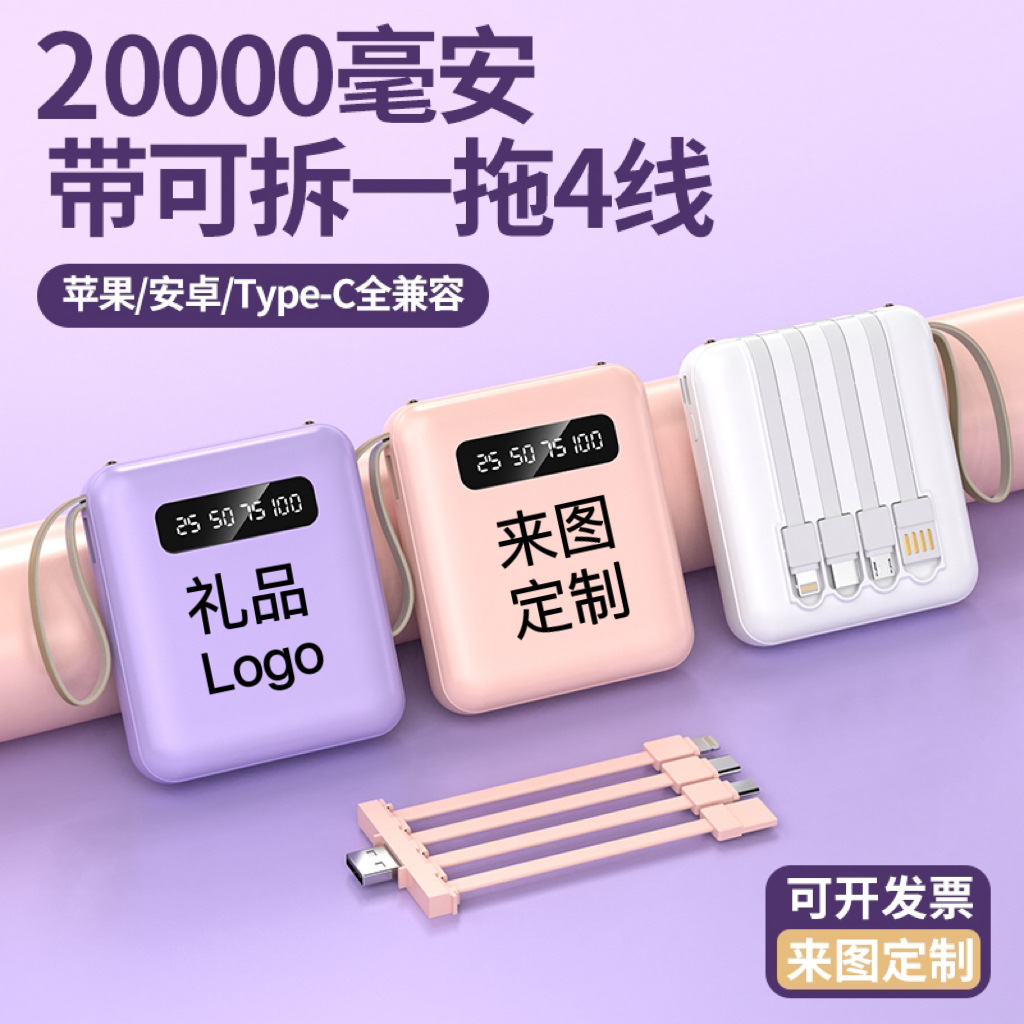 Grosir power bank berkabel mini 20000 mA kapasitas besar kecil ringan kustomisasi logo daya ponsel