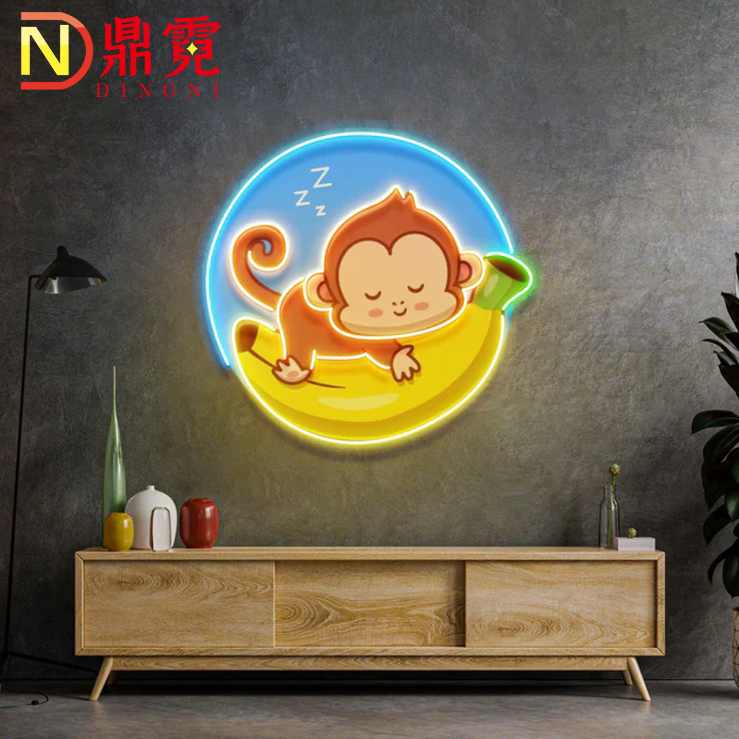 Produk monyet pisang neon laut biru lampu pemodelan papan reklame populer Temu lintas batas