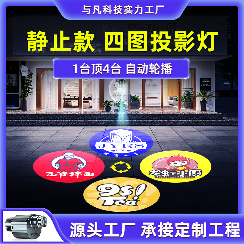 Lampu proyeksi logo Lampu pola multi-gambar, lampu iklan pintu toko LED HD logo tanah empat gambar