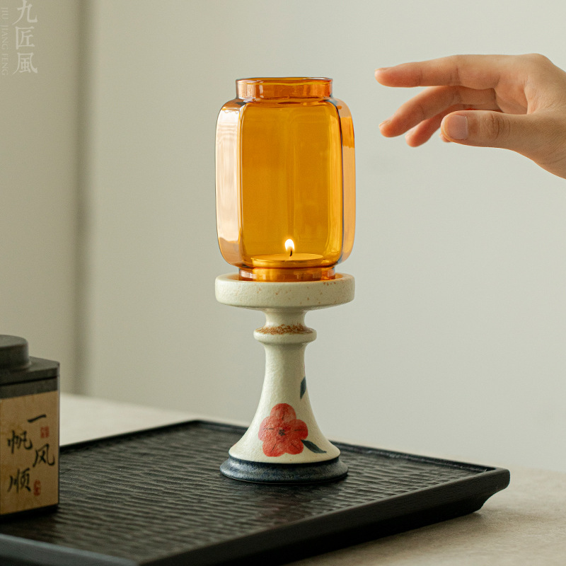 Tempat Lilin Dinasti Ming dan Qing yang dilukis dengan tangan Ornamen Lilin Aroma Merah Batu Api Biru dan Hijau Dekorasi Upacara Minum Teh Keramik Rumah Tangga Lampu Suasana Gaya Tiongkok
