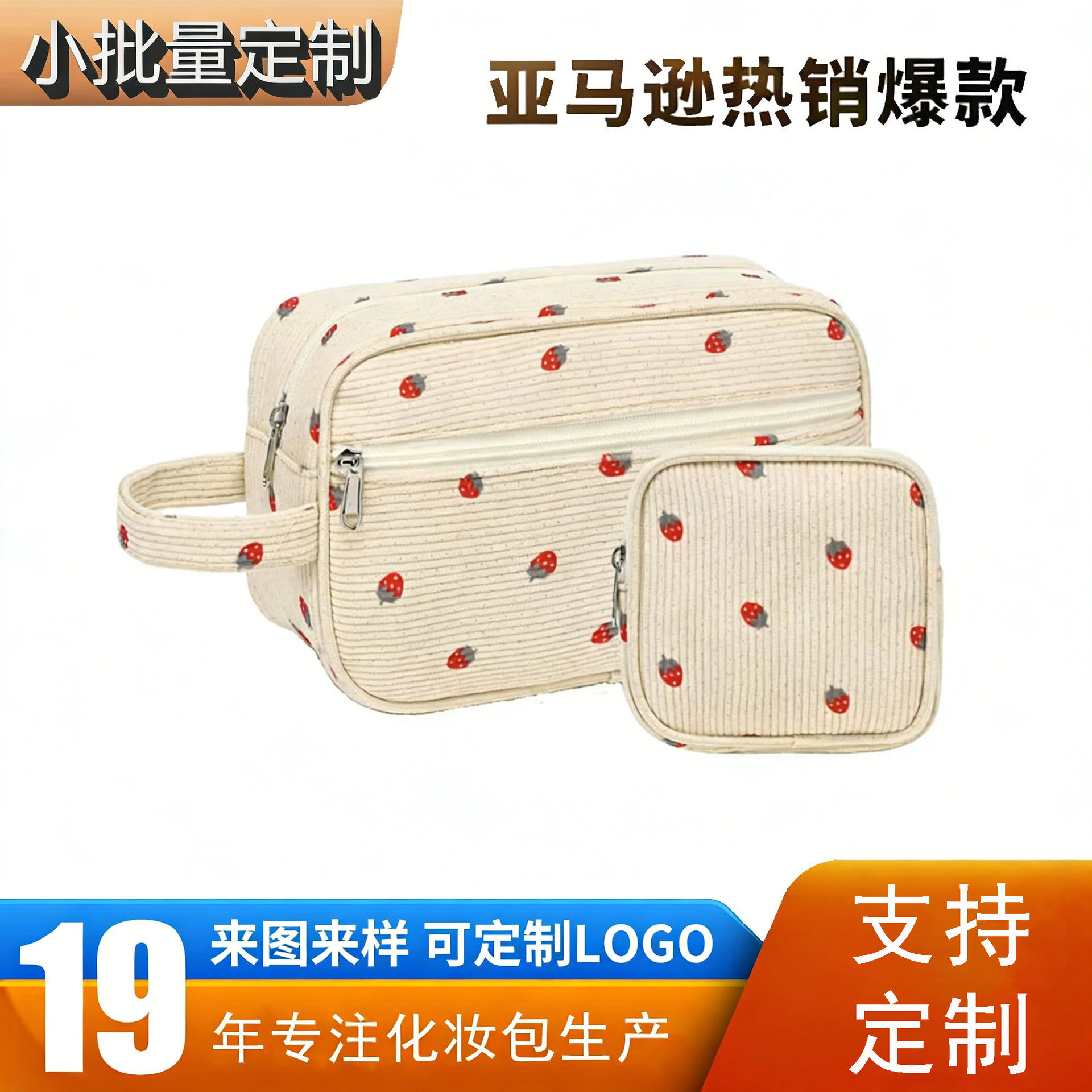 Tas Cuci Korduroi Bermotif Eropa dan Amerika Model Baru 2025 Tas Kosmetik Anti Air Portabel Serbaguna Amazon Kustom