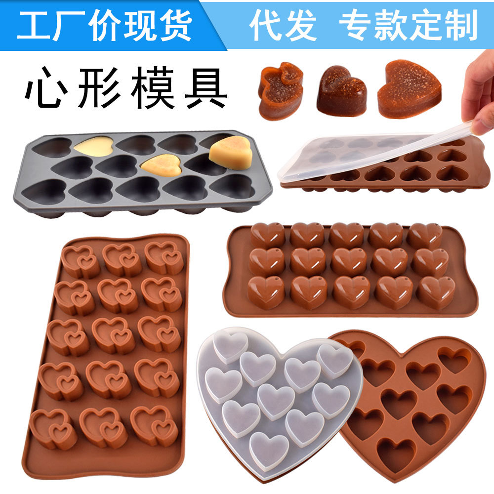 Cetakan permen biskuit cokelat silikon bentuk hati 15 buah cetakan memanggang kue nampan es silikon cetakan lilin epoksi