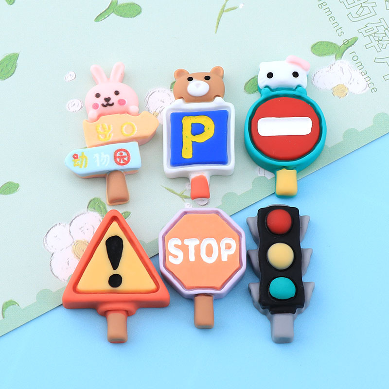 Lampu lalu lintas beruang kartun, lampu peringatan tanda rambut diy, tali kepala klip, lem cangkang ponsel, aksesori resin, grosir