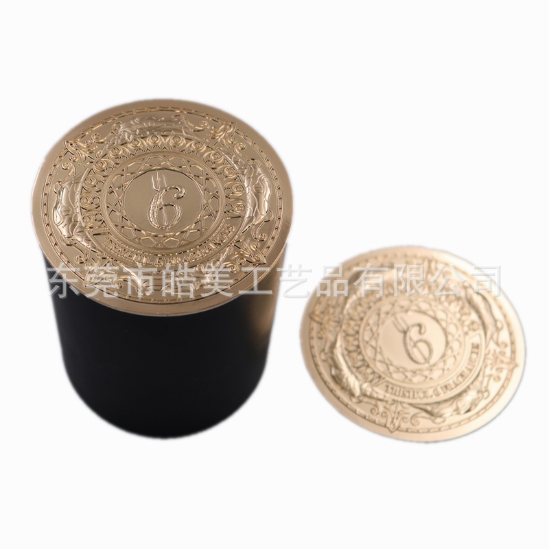 Penutup lilin LOGO timbul pola timbul, penutup logam paduan seng penutup lapis emas bulat tiga dimensi