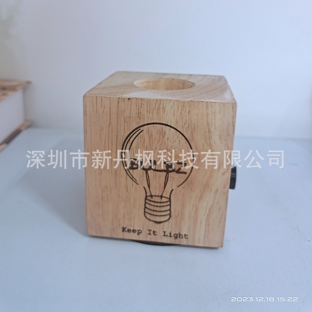 Pemegang lampu meja kecil LED, USB tipe-c kayu pengisian 5v tegangan rendah pola laser Logo E27