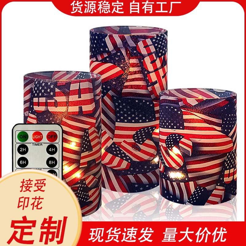 Tiga Set Lampu Kawat Tembaga Bendera Nasional Cangkir Lampu LED Lilin Elektronik Remote Kontrol