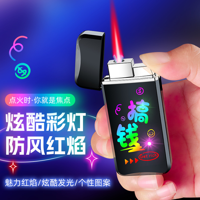 Lampu berwarna keren tahan angin api merah pemantik api kustom pola kustom logo iklan luar ruangan pemantik api tahan angin