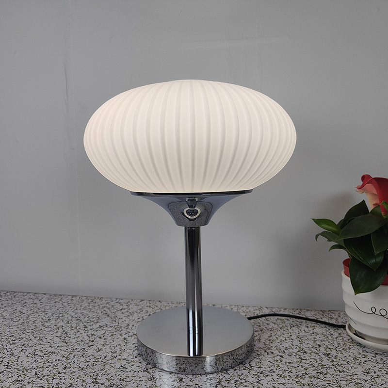 Bauhul lampu meja kaca bergaris antik, kepribadian kamar tidur ruang tamu samping tempat tidur lampu meja kreatif buatan tangan
