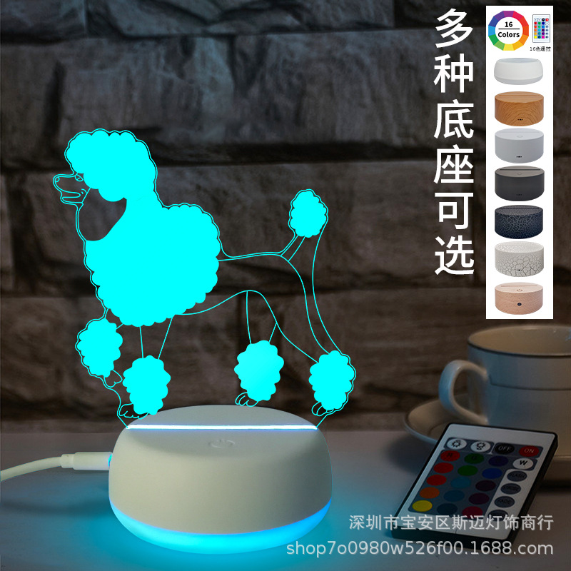 Lampu malam kartun pudel lampu meja 3D, kamar tidur lucu lampu samping tempat tidur kreatif DIY aktivitas LOGO hadiah lampu
