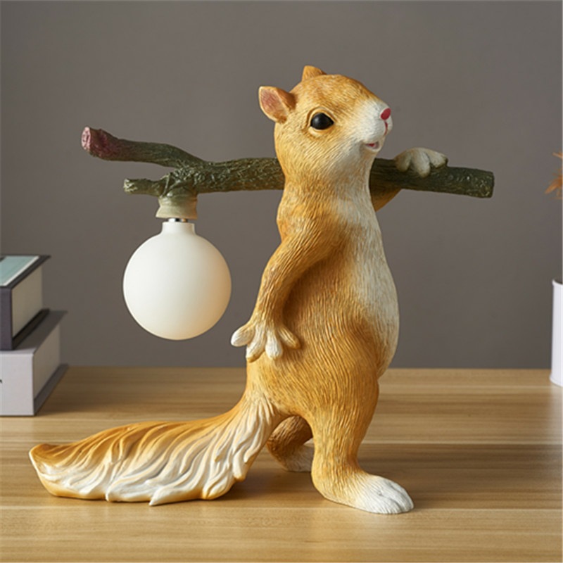 Nordic Internet selebriti lucu kartun tupai dekoratif lampu meja desainer kreatif belajar resin lampu kamar tidur samping tempat tidur lampu