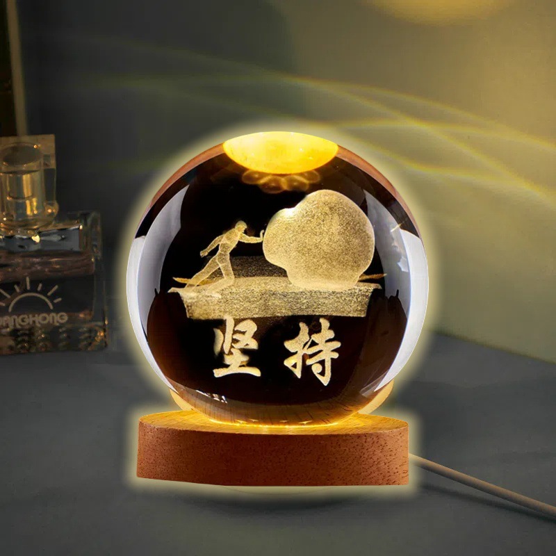 Bola Kristal Ukiran Dalam 3D Inspirasional Ketekunan Dekorasi Rumah Bercahaya Hiasan Hiasan Pola Hadiah Pindah Rumah Logo Dapat Disesuaikan