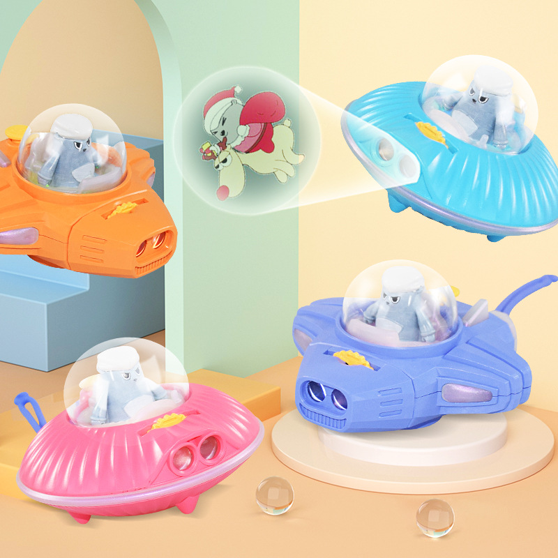 Cross-border anak-anak proyeksi bercahaya senter mainan puzzle bayi gambar pendidikan dini proyektor pesawat ruang angkasa kartun ufo