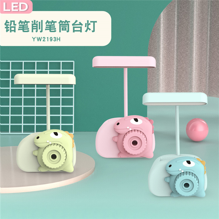 Kotak penyimpanan LED kartun dinosaurus USB, lampu meja kamar tidur, lampu samping tempat tidur pelindung mata, lampu baca rautan pensil, lampu belajar