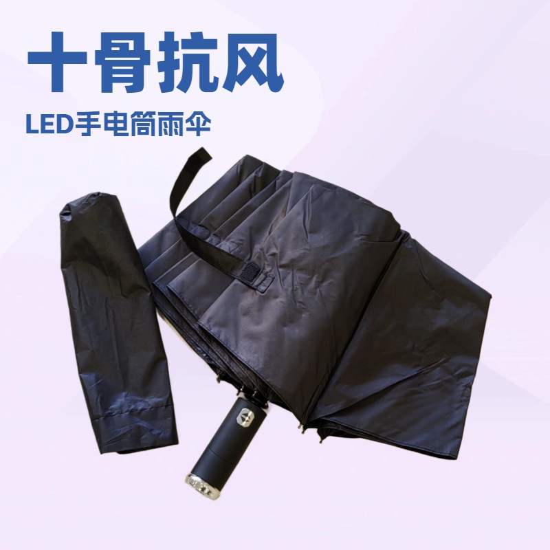 Payung Lipat Berputar Lampu LED Otomatis Payung Lipat Tiga Payung Cerah Dengan Cetak Payung Iklan Logo Grosir