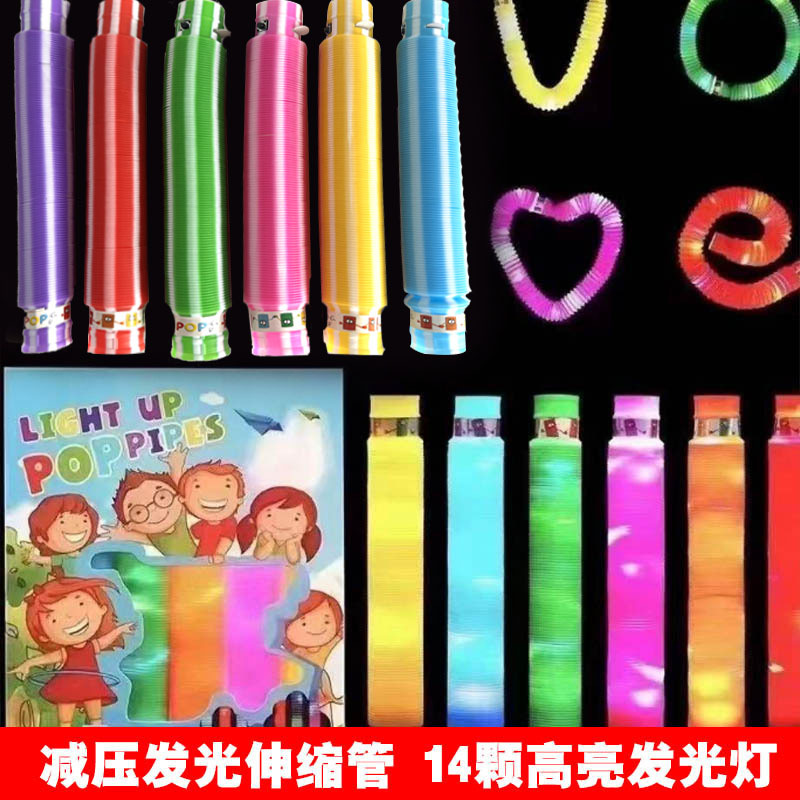 PopTube pipa air bercahaya penghilang stres, tabung peregangan bergaris DIY dengan lampu LED, mainan penghilang stres, mainan edukatif