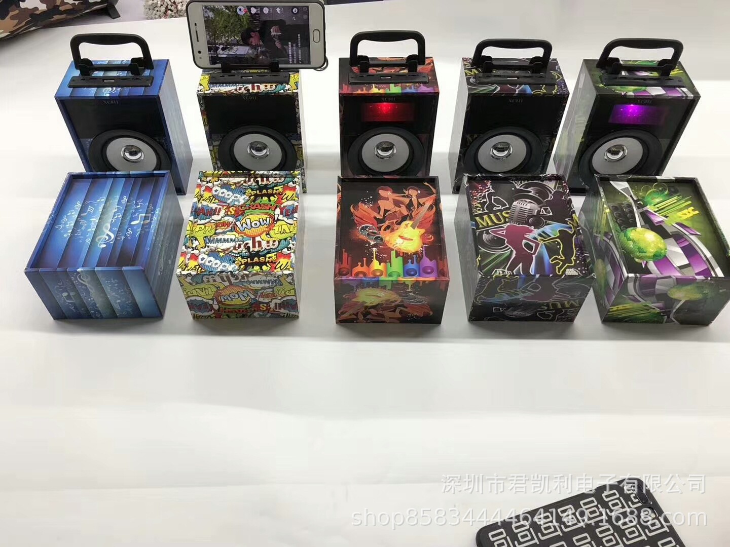 Lampu warna-warni Bluetooth kotak kayu kecil dengan pegangan kartu nirkabel Bluetooth pola kotak kayu kecil dapat LOGO