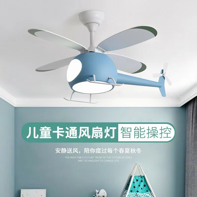 Lampu LED kipas helikopter kartun anak-anak kamar tidur belajar Tmall Genie cerdas kendali jarak jauh kipas langit-langit lampu LED