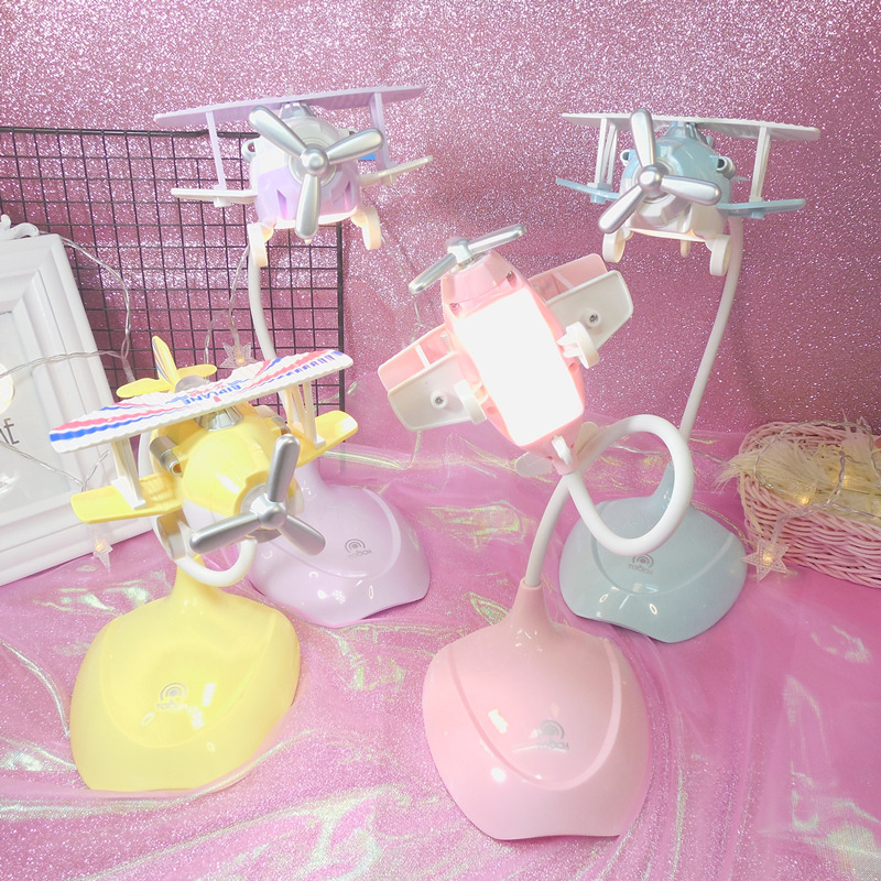 Lampu meja sentuh pesawat dua sayap Retro, lampu meja kecil dapat diisi ulang led anak-anak kamar tidur lampu samping tempat tidur kartun lampu meja pesawat