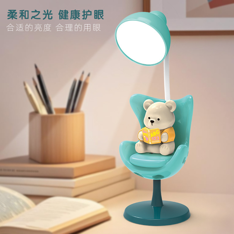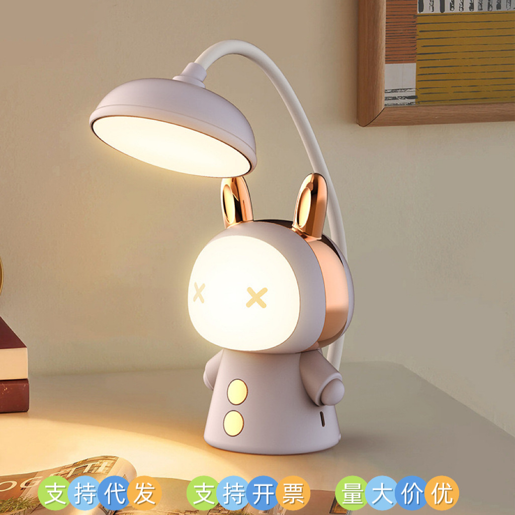 Lampu meja led kartun isi ulang daya, lampu meja pelindung mata pelajar kreatif, logo terbuka hadiah kecil untuk kegiatan