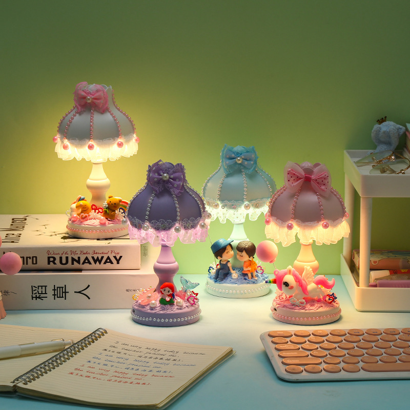 Lampu meja kecil kreatif, kartun lucu lampu malam asrama siswa hadiah ulang tahun kreatif dekorasi lampu meja suasana