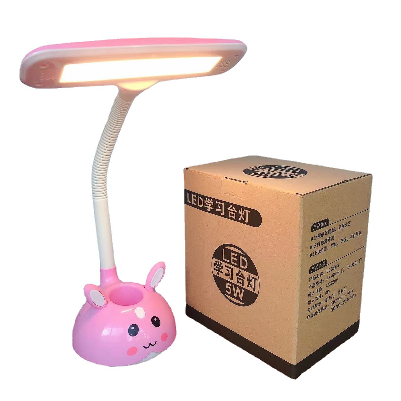 Lampu meja pegangan pena kelinci kartun, lampu meja belajar membaca lampu samping tempat tidur led manik-manik lampu baca menulis