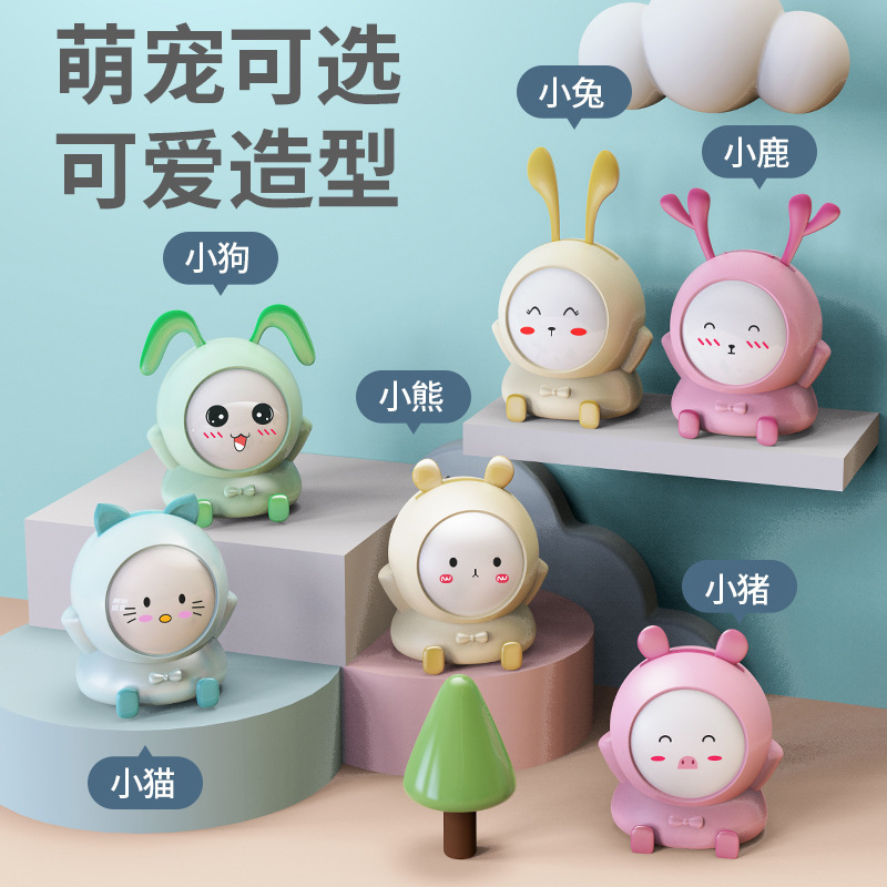 Lampu meja mini multifungsi, lampu meja lintas batas untuk Pelindung mata siswa, lampu malam tiga gigi USB isi ulang dengan celengan kartun