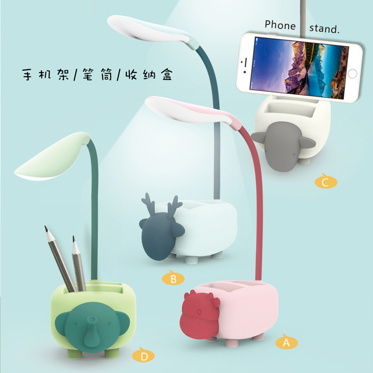 Lampu meja penyimpanan led kartun siswa, lampu meja kecil lipat pengisian daya kamar tidur, pelindung mata belajar membaca kartun dengan braket ponsel