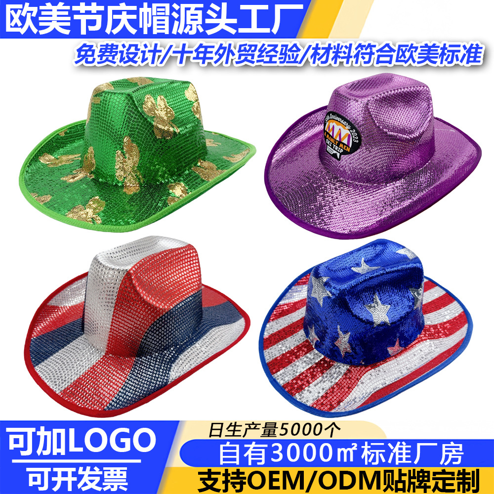 Bendera tiga warna plus cahaya komposit topi koboi berpayet topi lintas batas Eropa dan Amerika Amazon barat Perdagangan Luar Negeri topi bulu Kempa